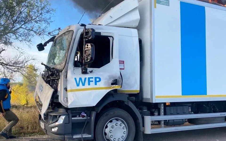 Нагадаємо, зранку 14 жовтня російські війська дронами та артилерією атакували гуманітарні вантажівки ООН на Херсонщині.