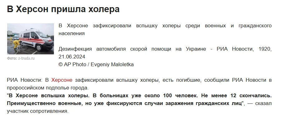 Якщо ви чекаєте якихось доказів – даремно. Звичайно, пропагандисти закликають вірити їм на слово. Схожа ситуація була минулого року, коли за кілька місяців херсонці нібито пережили епідемії черевного тифу, туберкульозу, дизентерії, холери та бубонної чуми. Тож «хворіти» для наших городян, на думку росіян, це свого роду «хобі».