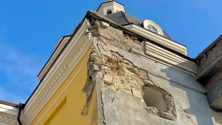 Влучання відбулося близько 16:00, в результаті чого пошкоджено центральний вхід до храму, гараж, вибиті вікна собору, йдеться у матеріалі.