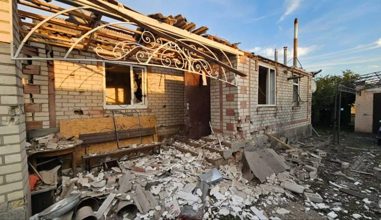 В ураженому будинку уламками пошкодило стіни, покрівлю, вікна й шибки.