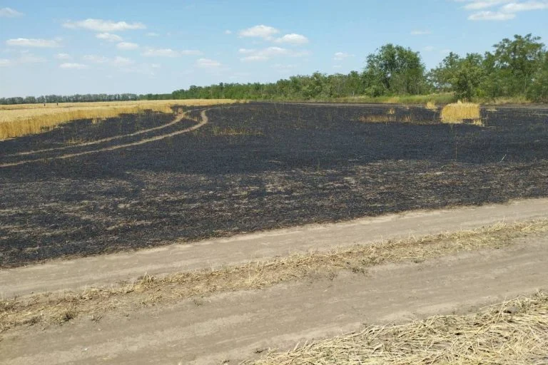 Крім поля, через спричинену обстрілом пожежу також постраждала лісопосадка.