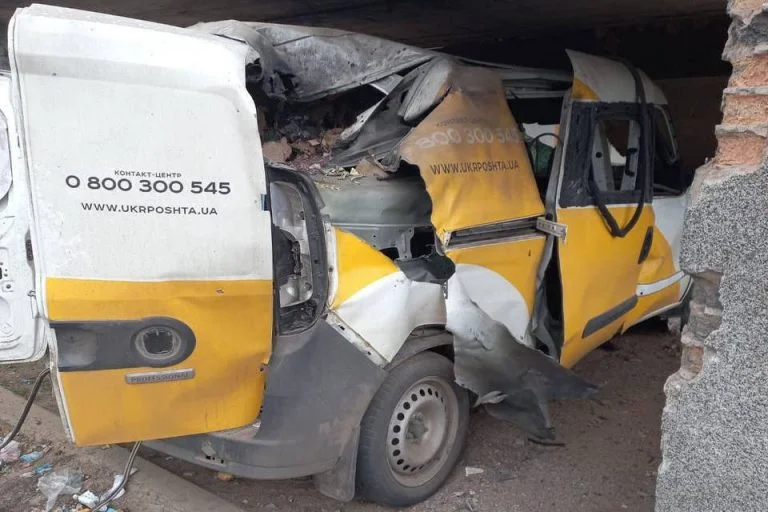 Також загарбники пошкодили автомобіль Укрпошти. Зробили вони це скиданням вибухівки з безпілотників.