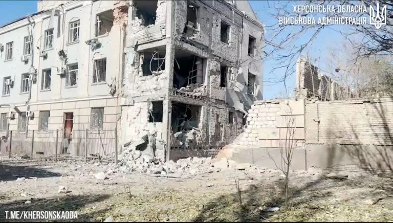 Російський авіаудар зруйнував будівлю СБУ у Херсоні.