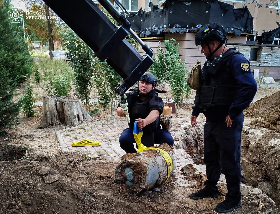 Під час однієї з авіаційних атак російських військ по Херсону було випущено декілька авіабомб. Одна з них не здетонувала.