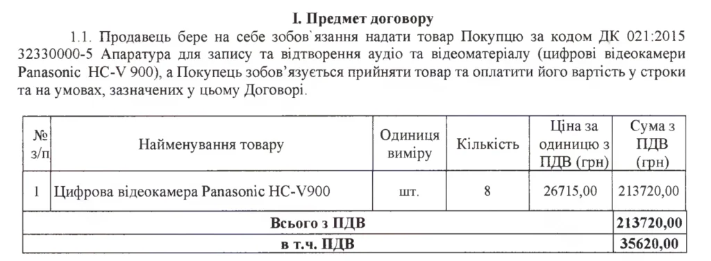 Згідно з договором, СБУ придбало камери вартістю 26,7 тис. грн/шт. Це середня ціна на ринку.
