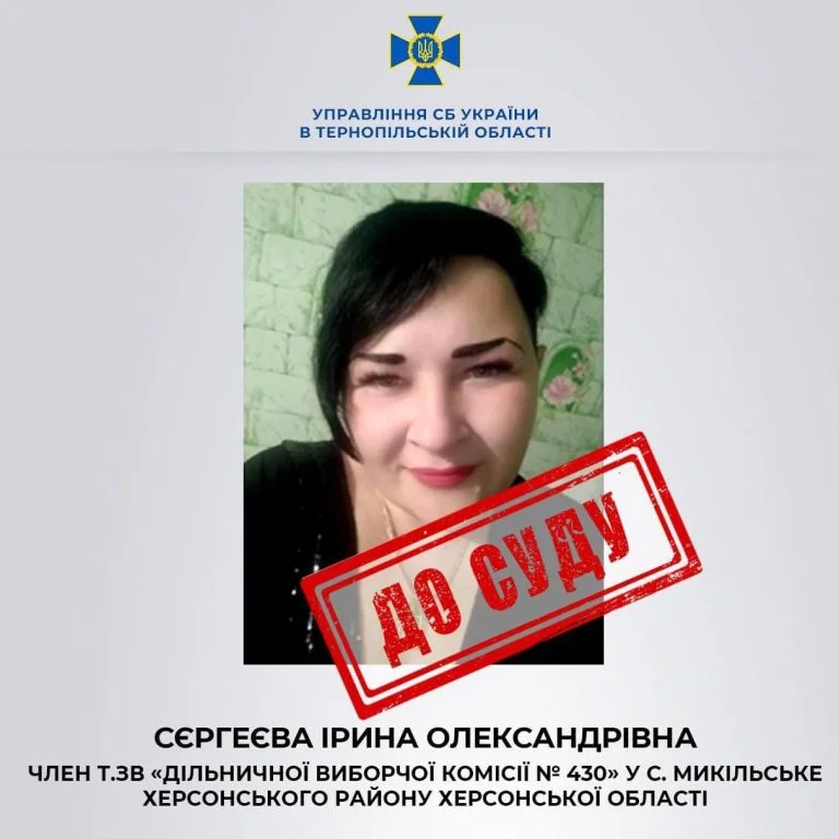 За інформацією слідства, Сєргеєва проводила референдум в якості членкині незаконної дільничної виборчої комісії.