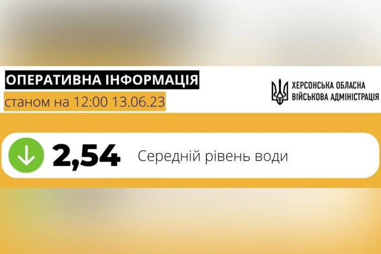 У Херсонській області середній рівень води впав до 2,54 метрів.