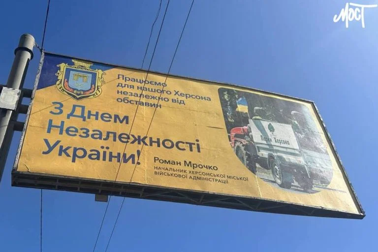 Білборди з підписом Мрочка та написом “Працюємо для нашого міста Херсона. Працюємо для наших людей” з’явились до Дня міста. Скільки ще вони будуть розміщені – невідомо.