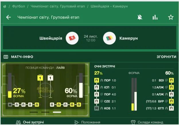 Вивчайте лінії, експертні прогнози, стежте за актуальними новинами.