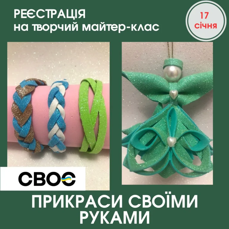 17 січня освітньо-тренінговий центр «СВОЄ» запрошує херсонців на арт-терапію. У програмі – майстер-клас “Прикраси своїми руками”.