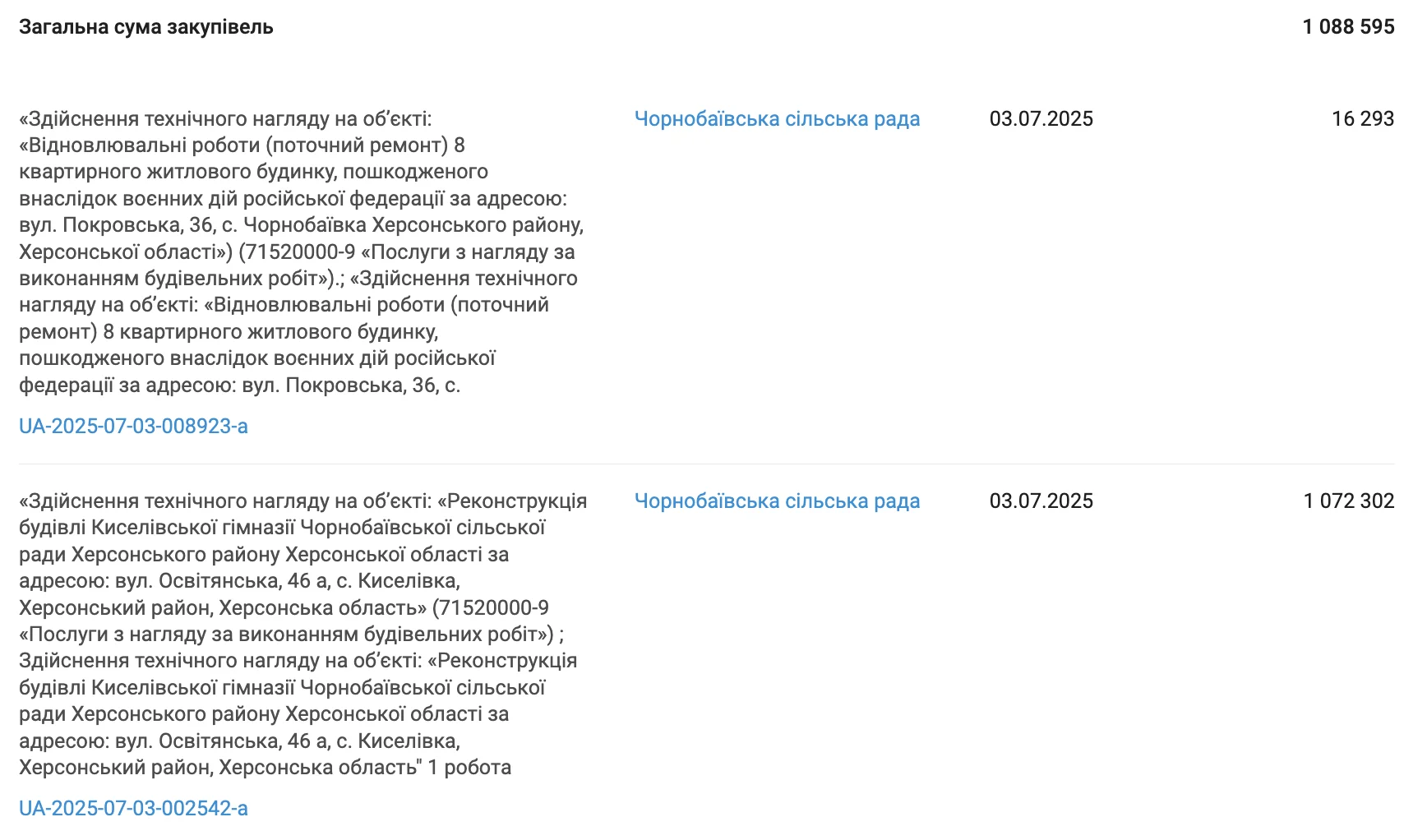 Зазначимо, що 3 липня Чорнобаївська сільська рада також замовила у компанії технічний нагляд за ремонтом восьмиквартирного будинку.