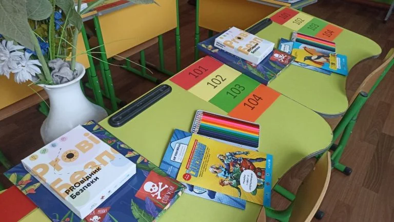 Зазначається, що безпековий простір оснащений інтерактивними макетами та стендами, інвентарем для надання домедичної допомоги й муляжами вибухонебезпечних предметів.