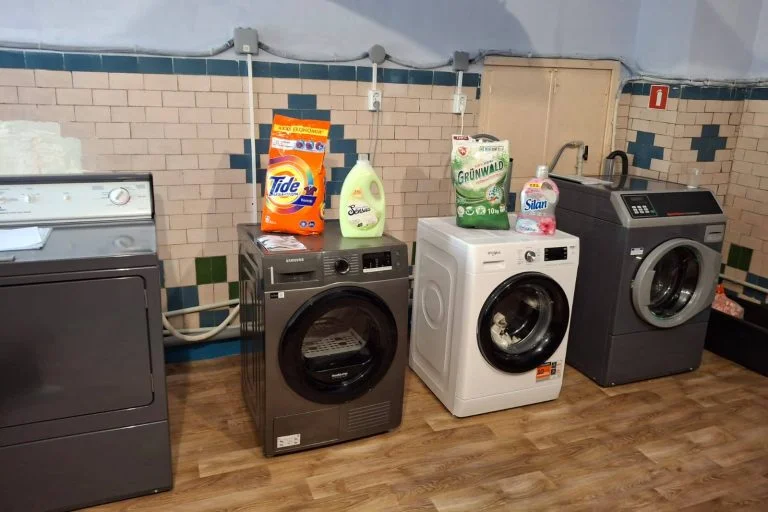 Ще у пральні облаштували кімнату для складання білизни, зберігання засобів для прання і т. д. Пральня буде орієнтована на надання безкоштовних послуг переселенцям, людям з інвалідністю, одиноким людям похилого віку, багатодітним родинам і т. д.
