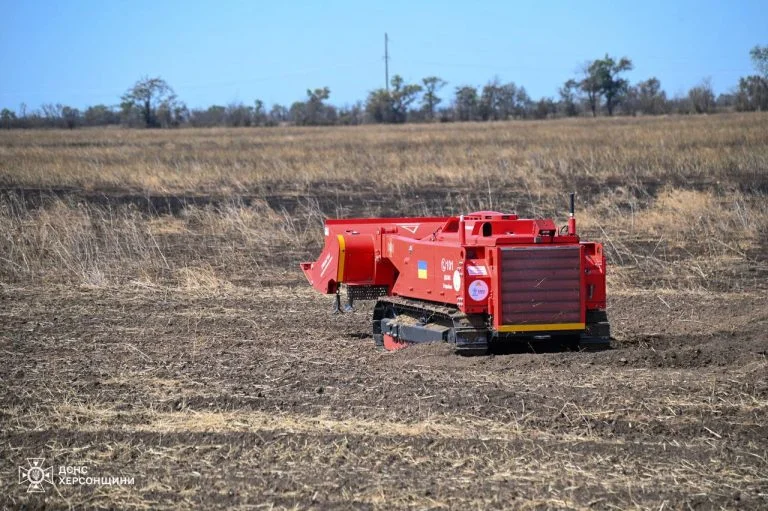 У Державній службі з надзвичайних ситуацій України показали, як на Херсонщині проводять розмінування за допомогою сучасної машини механізованого розмінування MV-4.