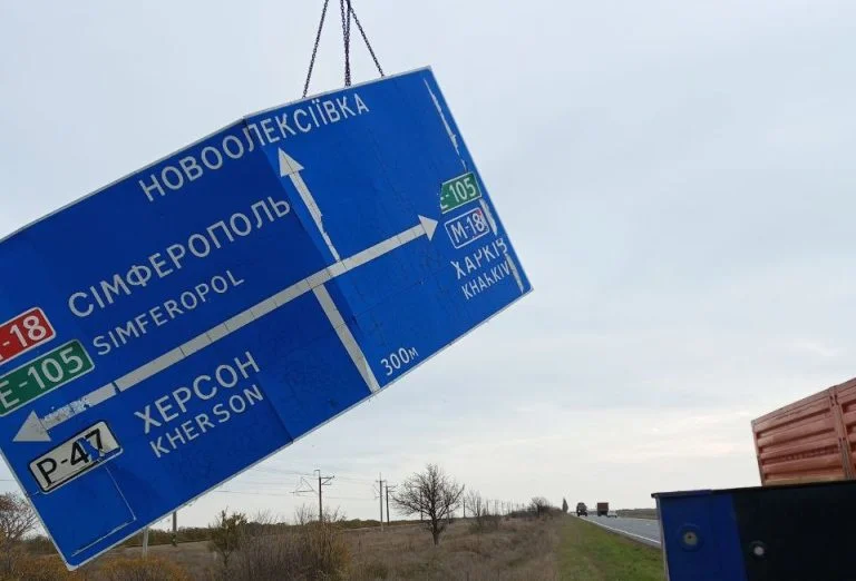 Заміняти дорожні знаки окупаційна влада почала ще торік. Після цього Уповноважений із захисту державної мови Тарас Кремінь заявив, що демонтаж україномовних дорожніх знаків на території окупованої Херсонської області – це один з проявів кремлівської політики лінгвоциду.