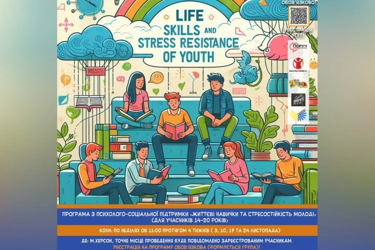 У Херсоні в молодіжному просторі “МолоДіжка” пройде програма з психосоціальної підтримки для молоді у віці від 14 до 20 років “Життєві навички та стресостійкість молоді”.
