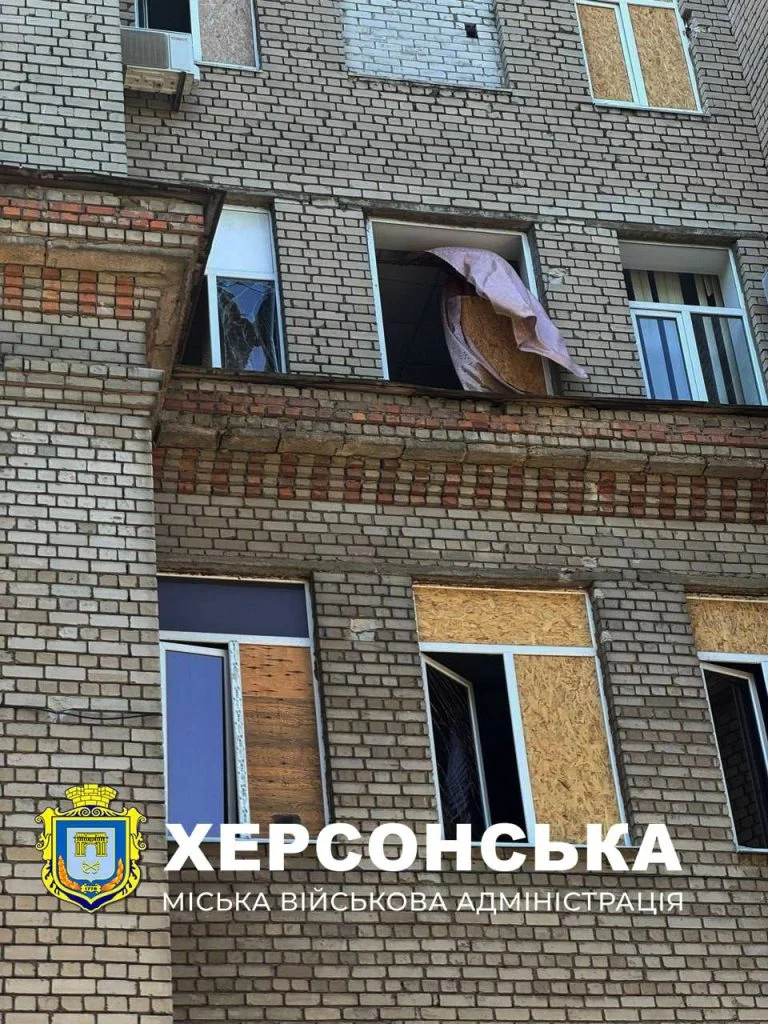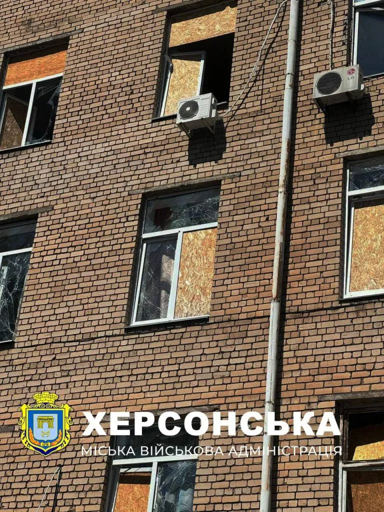 Як повідомив офіцер Сил оборони Херсона Руслан Михайлевський, внаслідок обстрілу також пошкоджена будівля базового медичного коледжу. Зокрема, вибиті вікна та двері.