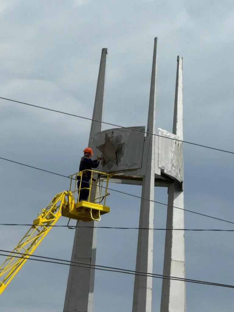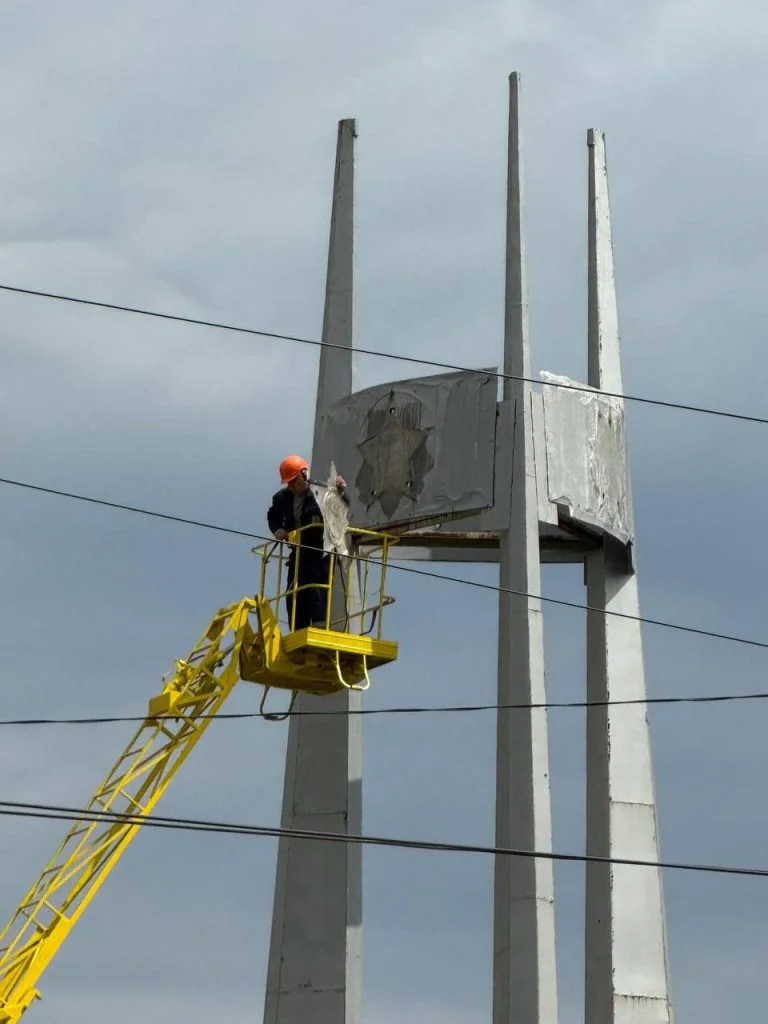 У Таврійському мікрорайоні Херсона декомунізували монумент “Три штики”, з нього прибрали радянські зірки з гербом СРСР.