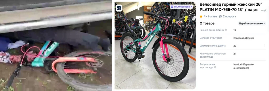 Нам вдалося встановити марку велосипеда, що нібито потрапив під колеса позашляховика. Це – PLATIN MD – 765. Відповідна модель вважається жіночою та призначена для використання велосипедистками зростом від 130 сантиметрів. Як на PLATIN MD – 765 могли поміститись одразу двоє чоловіків, яких ми бачимо на відео – велике питання.