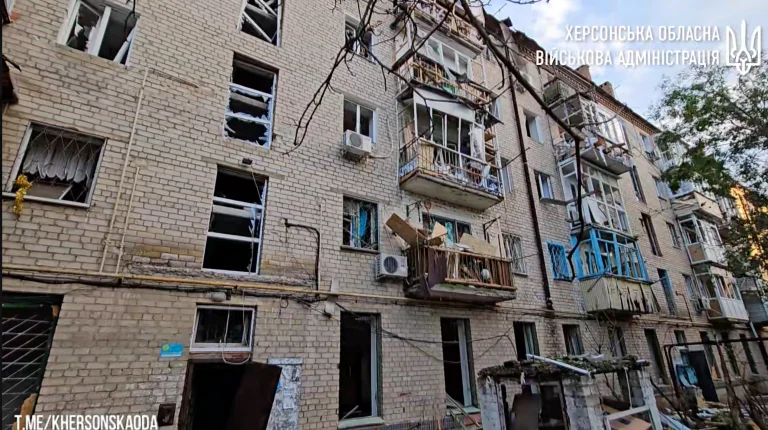 У Херсонській ОВА показали наслідки влучання російської ракети Х-31 по багатоповерхівці у Центральному районі Херсона.