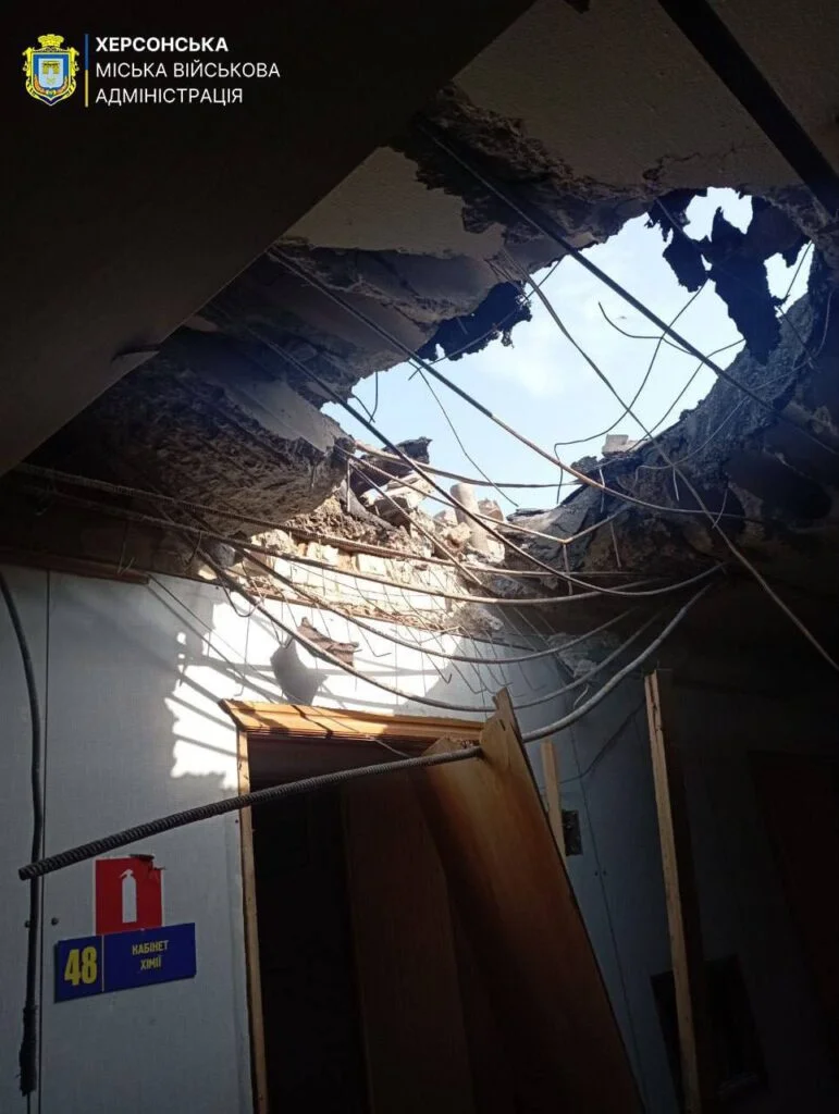 Унаслідок чергового обстрілу Корабельного району Херсона було пошкоджено заклад освіти.