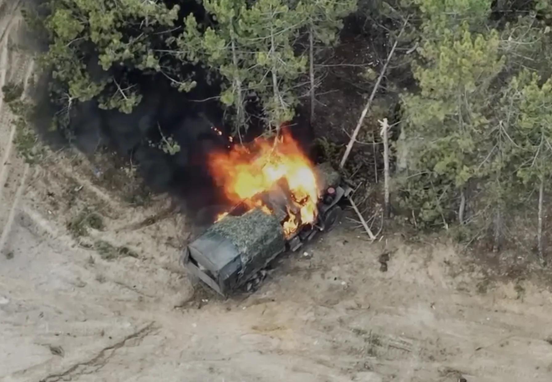 Ворожу вантажівку виявив розвідувальний безпілотник, після чого техніка була атакована дроном з вибухівкою.
