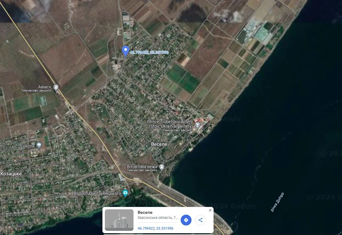 26 лютого 2022 року приблизно о 19:00 російські військові розстріляли 53-річного чоловіка у селі Веселе Новокаховської громади.