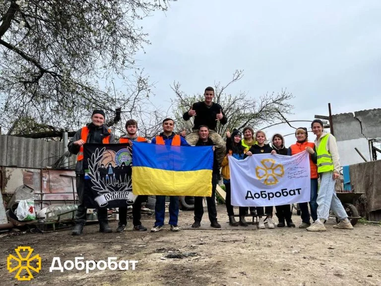 Волонтери Херсонського будівельного батальйону “Добробат” допомогли місцевим розчистити завали після прильоту на територію будинку родини.