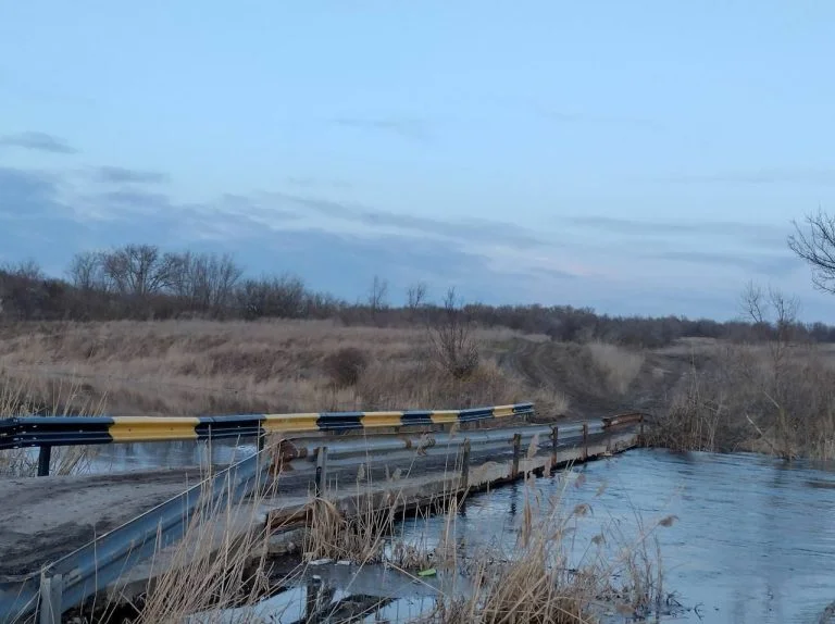 Армія РФ зруйнувала старий міст при відступі з громади. Новий тимчасовий міст має розміри 18 метрів у довжину і 4 метри у ширину.