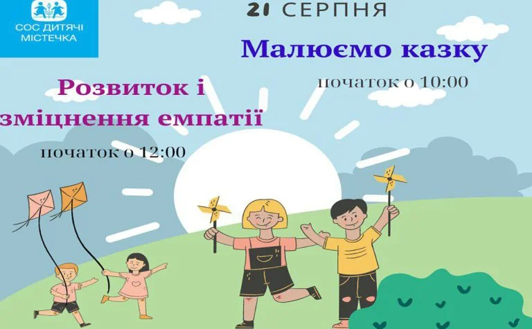 Заняття «Малюємо казку» для дітей віком 5-11 років відбудеться 21 серпня (середа) о 10:00. Форма для реєстрації: https://ee.kobotoolbox.org/x/W8f72pMu.