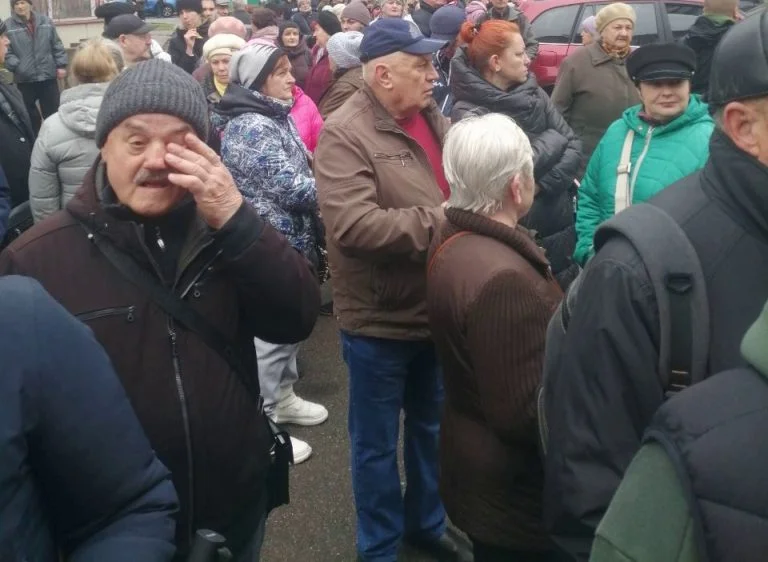 Як зʼясувалося, люди прийшли отримувати паперові грошові сертифікати на придбання товарів у мережах Сільпо та АТБ.