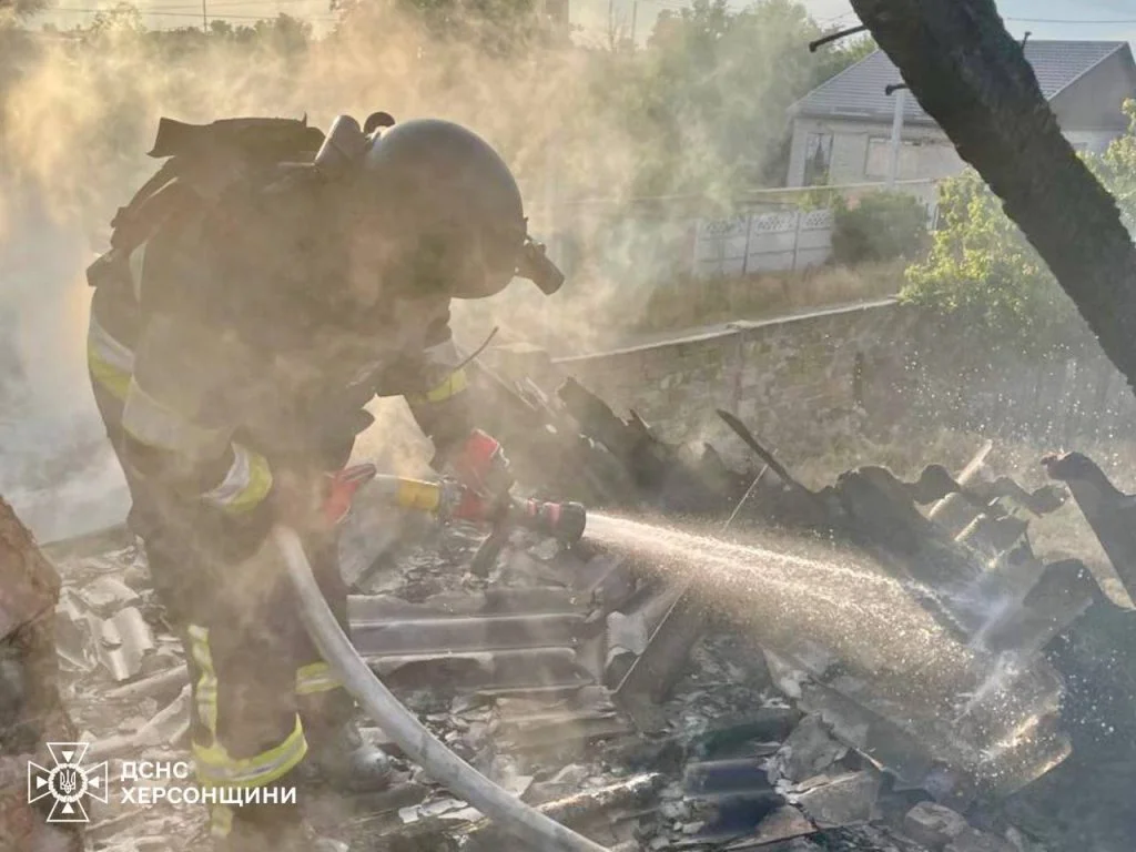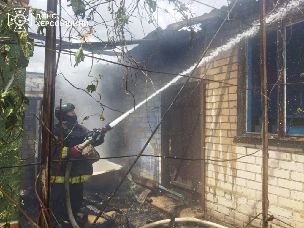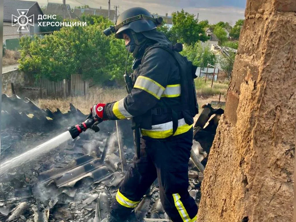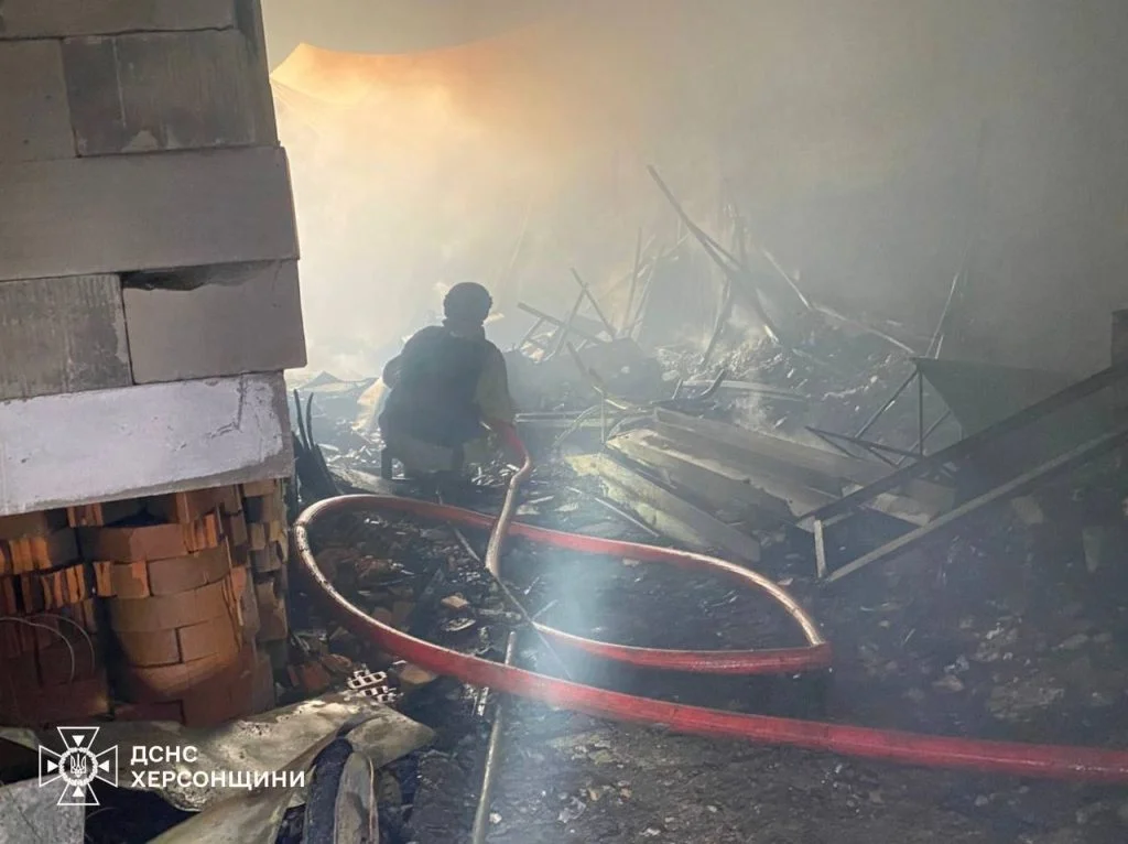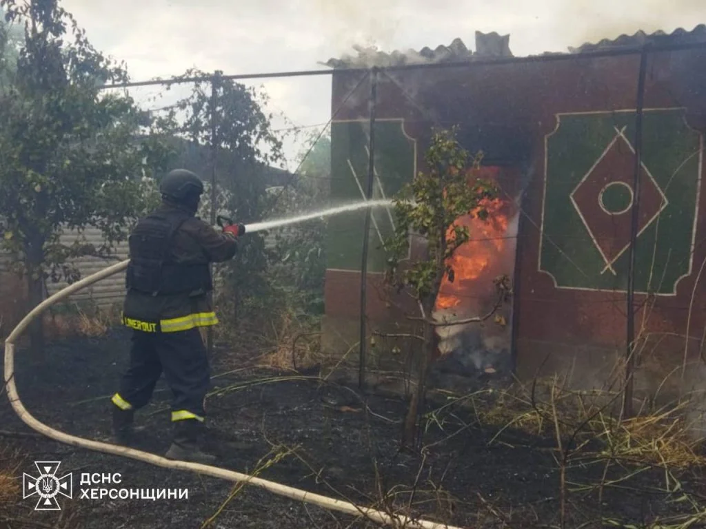 Вчора російські військові обстрілювали житлові квартали Білозерки. Внаслідок влучань снарядів виникли пожежі в мультимаркеті, торговельних кіосках, житловому будинку та господарських спорудах.