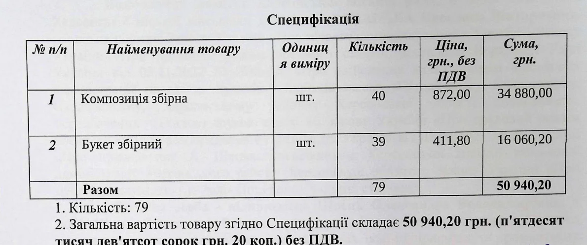 Як вказано на порталі Prozorro, виконком замовив 40 композицій та 39 букетів.