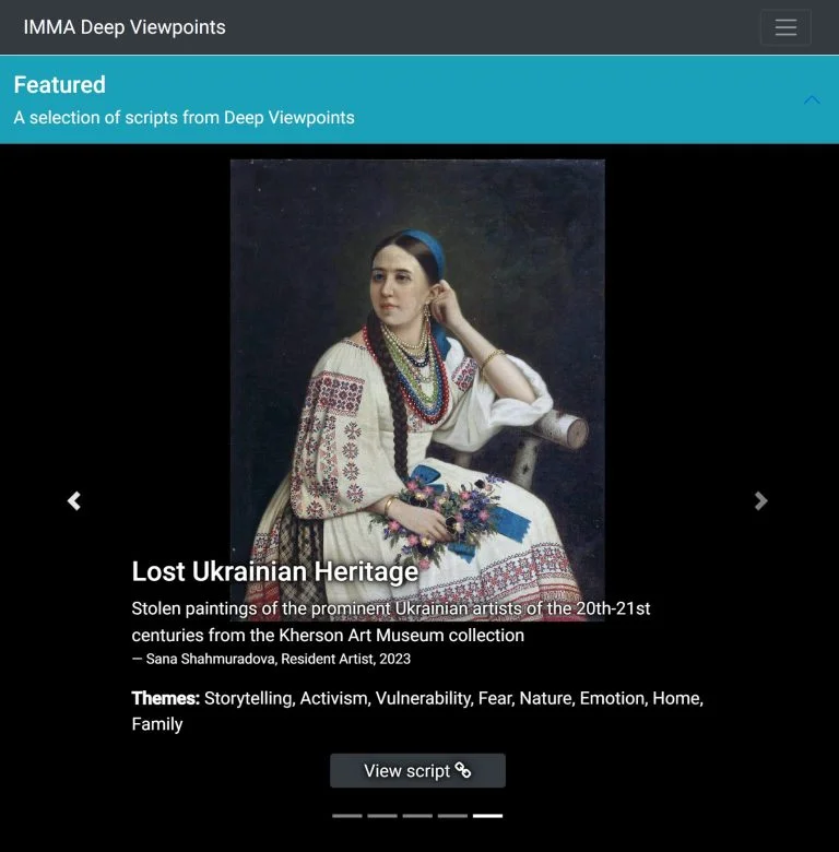 “Перебуваючи у квітні цього року на художній резиденції в Дубліні, мисткиня запропонувала IMMA познайомити відвідувачів їх ресурсу з викраденими росіянами творами українських музеїв. Зосередитися Сана вирішила саме на колекції Херсонського художнього. Так одна художниця поєднала два музеї, проєкт реалізувався на сайті Ірландського музею”, — йдеться в повідомленні музею.
