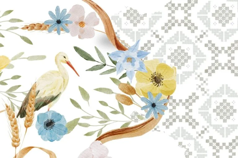 В композиції представлені рушники, виготовлені в різних громадах Херсонщини. На них вишиті назви й орнаменти, притаманні регіону.