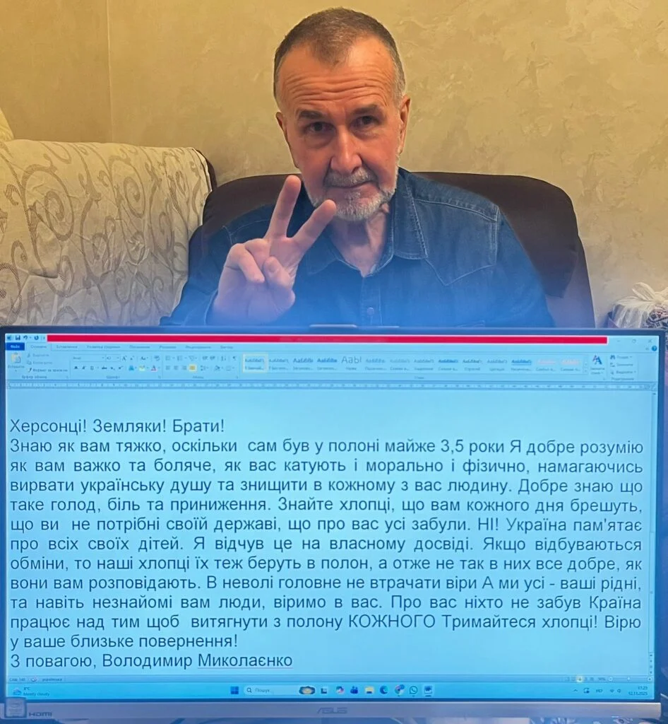 У своєму листі Володимир Миколаєнко написав, що в неволі головне не втрачати віри, адже про них ніхто не забув та додав, що країна працює над тим, щоб кожного українця повернути з полону.