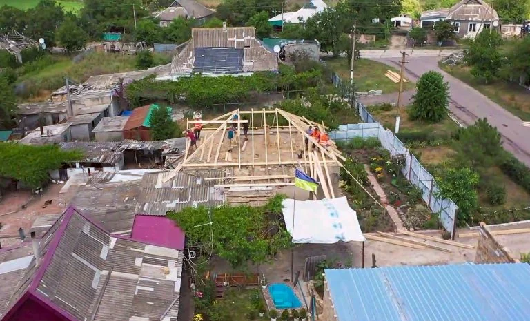 Волонтери з Волині в рамках державної програми «Пліч-о-пліч» відбудовують село Благодатне Херсонського району Херсонської області.