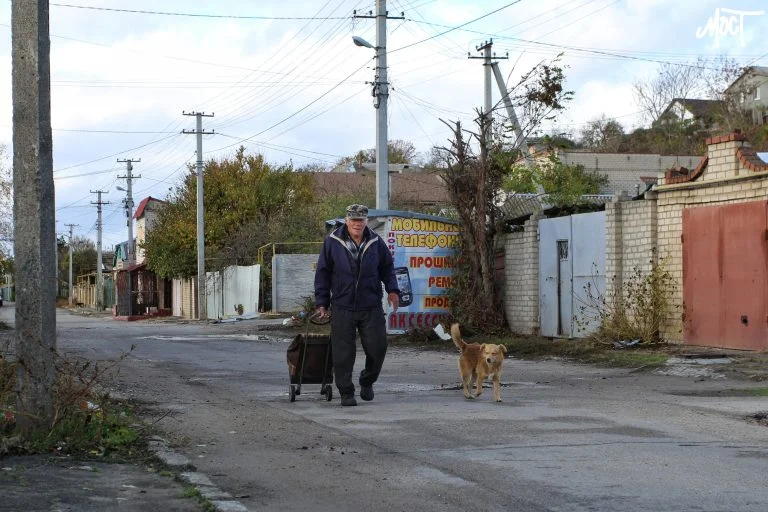 Проте там залишаються люди. Хтось наглядає за будинком, хтось завершує ремонт в очікуванні холодів, комусь нікуди виїжджати, а хтось доглядає за собаками, які збігаються з усіх дворів в пошуку їжі та тепла.