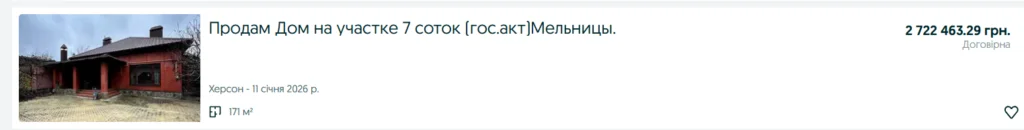 Паралельно з профільними сервісами нерухомості пропозиції про продаж житла на Херсонщині активно публікують і на загальноукраїнських майданчиках, зокрема на OLX. Там ціни та формат оголошень часто суттєво відрізняються від ринку квартир у багатоповерхівках.