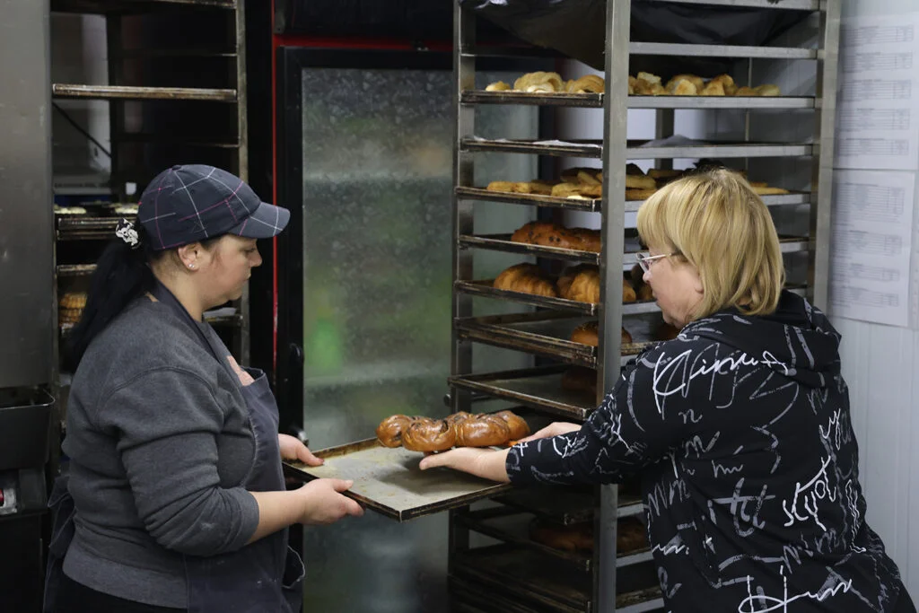 “Отримав, – каже підприємець,– грант від DRC (Данської ради у справах біженців, – МОСТ) – купив пічки для хліба. Завдяки американському гранту у нас є обладнання для розкочування тіста. Є перспективи щодо співпраці з британцями”.