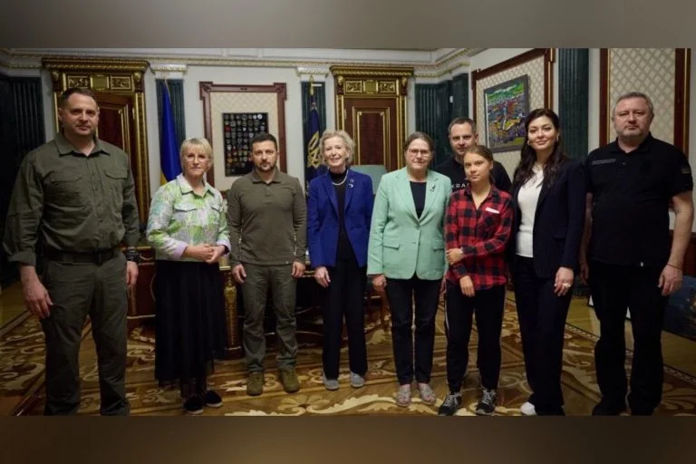 Крім Грети Тунберг, на зустрічі з Зеленським була співголова Групи Маргот Вальстрем (колишня віце-прем’єр-міністерка та очільниця МЗС Швеції).